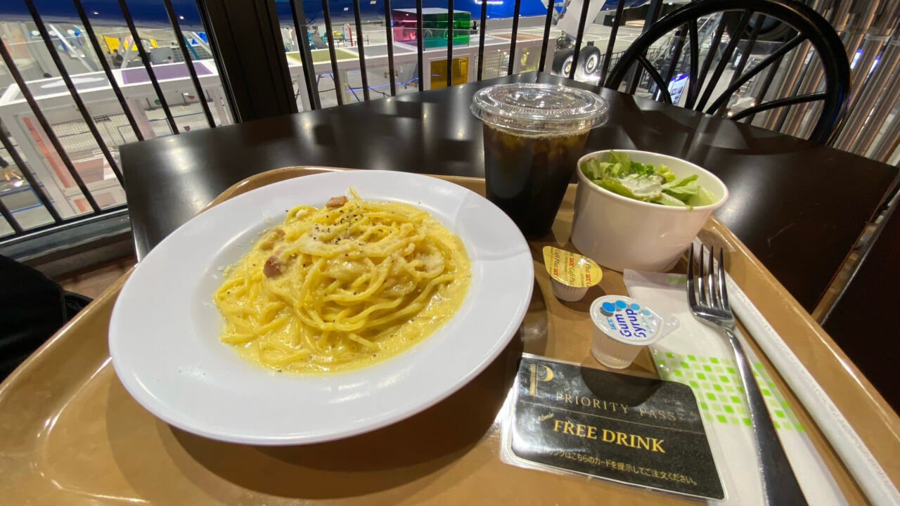 ⑤飛行機を間近に見ながら無料ピザorパスタを食す