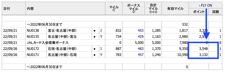 ・石垣→セントレア(Class-J当日アップグレード):3,548(FOP2倍)