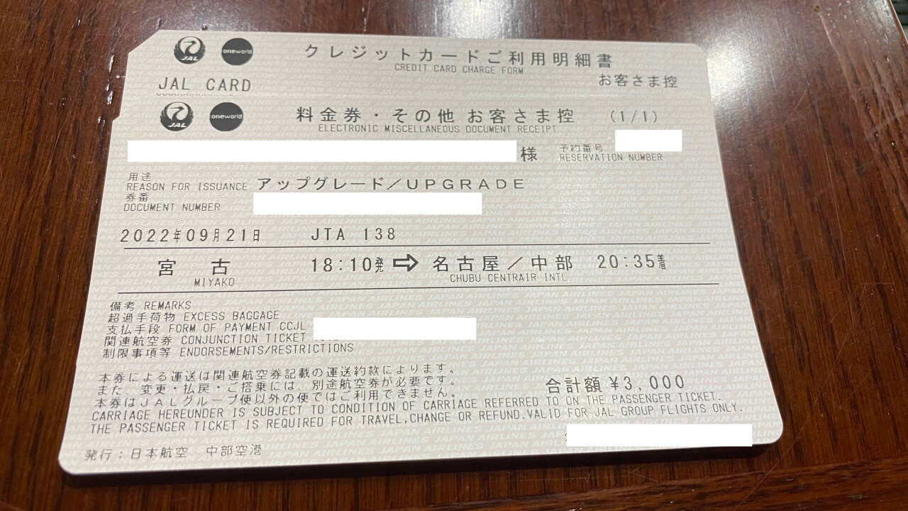 ・宮古→セントレア(Class-J当日アップグレード):3,328(FOP2倍)