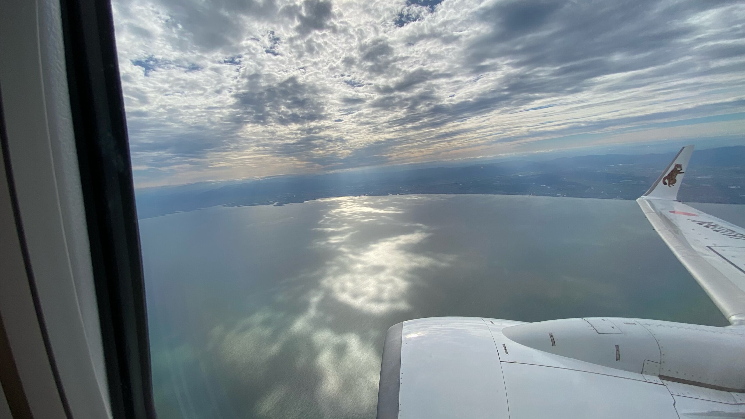 一瞬の出来事でしたが、よくバスで体感する遠心力を飛行機で体験できますよ。