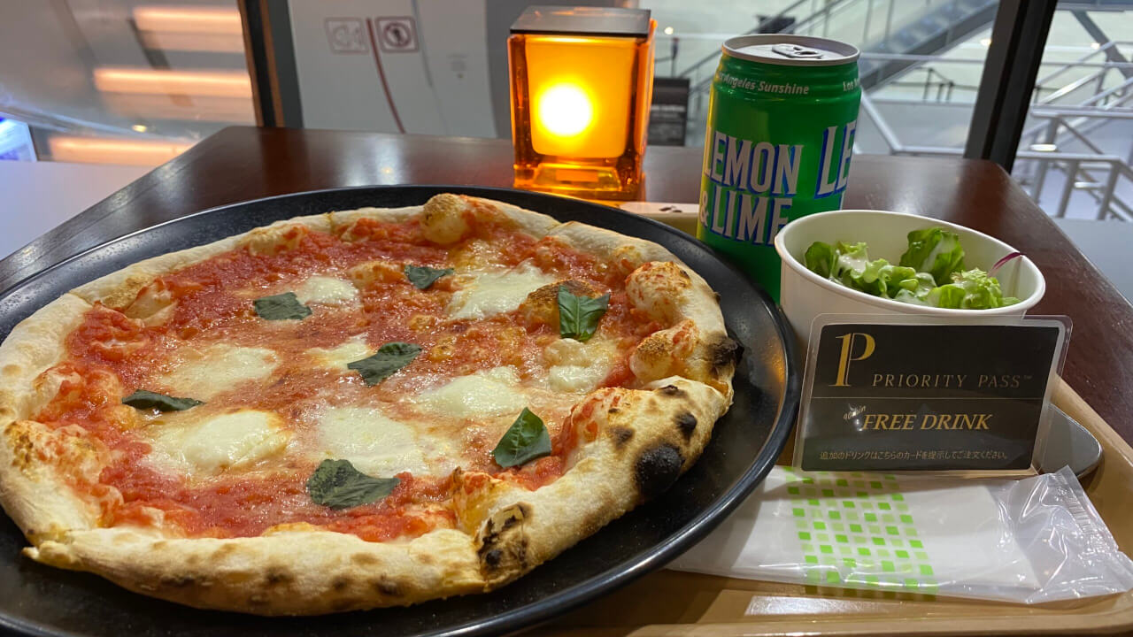 ピザを堪能した後は、搭乗時刻までラウンジで静かな時間を楽しみます。