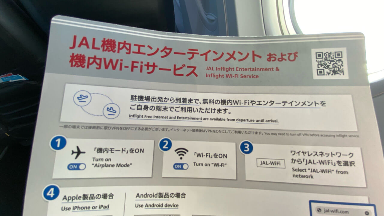 機内のWiFiに繋いで、JAL専用画面でメアドを入力するだけです。