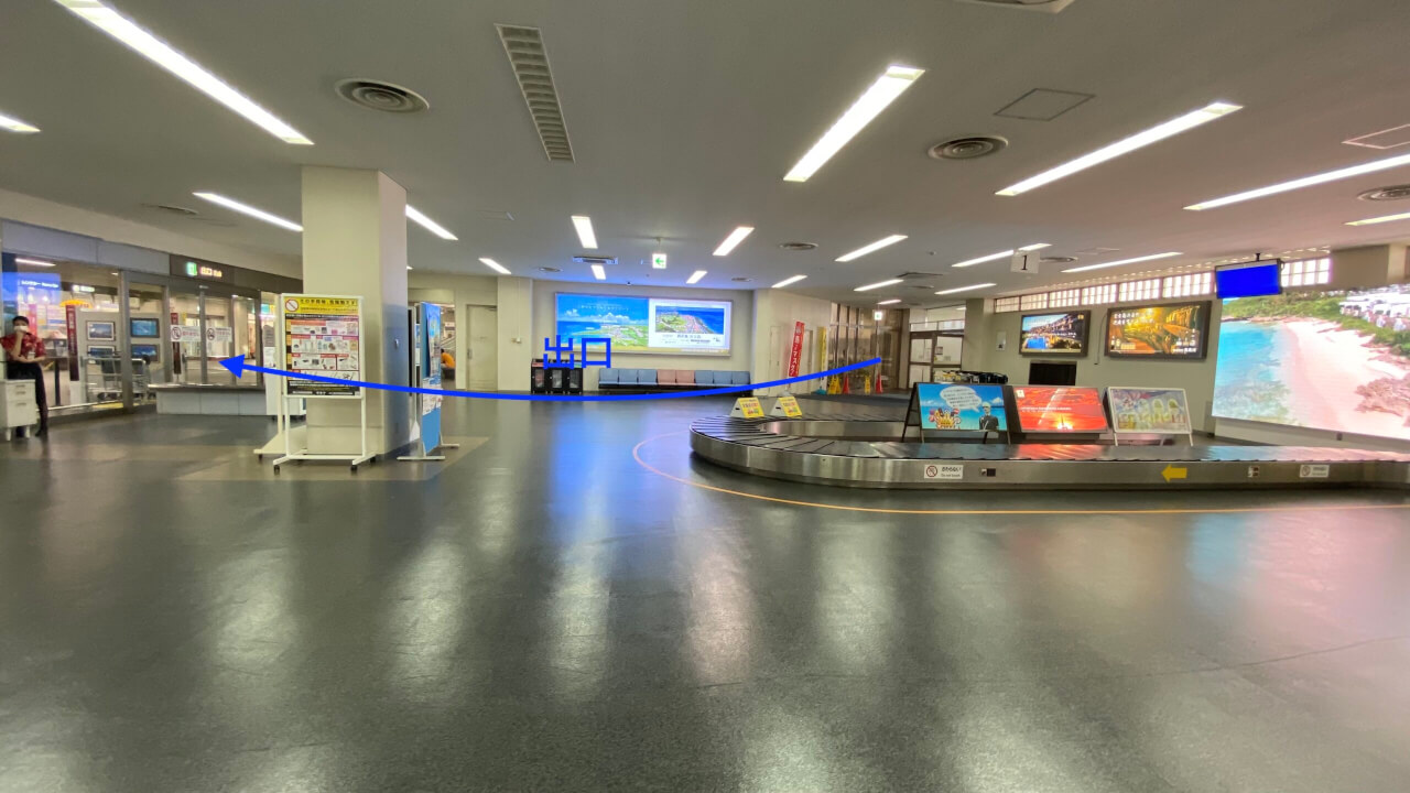 沖縄空港と違って、到着するとそのまま一階出口兼荷物受け取りに繋がっているためです。