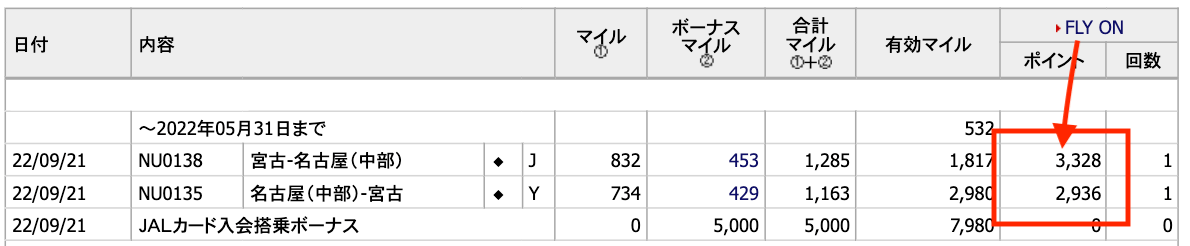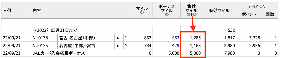 5,000マイルはセントレア⇔宮古2.5往復分と思うと、とても大きな存在ですね。
