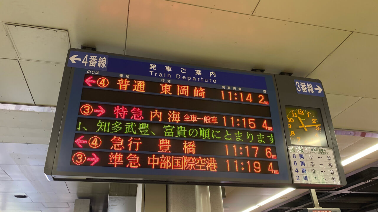 今日は出発時刻が15:00なので、最安値の鉄道ルートでセントレアに行くことにしました。