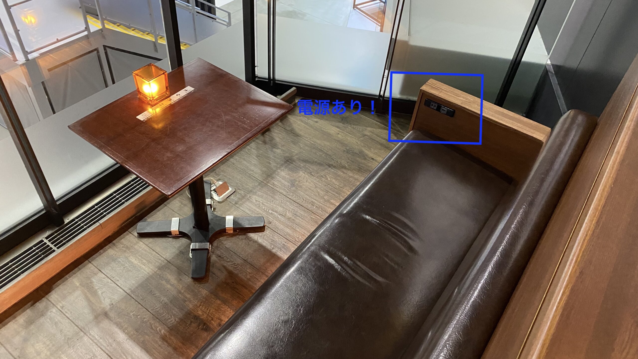 →飛行機側のソファー席にはコンセントがあり、充電の面でも助かりました。